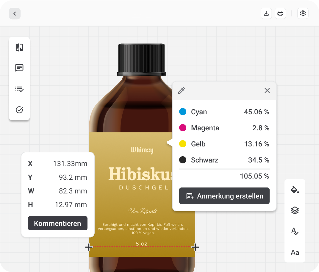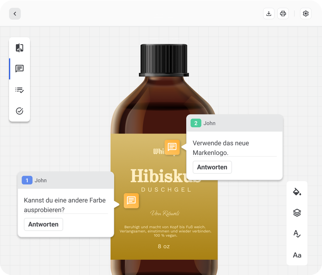 - Erhalte präzises, gebündeltes Feedback an einem Ort – direkt auf dem Verpackungsentwurf.