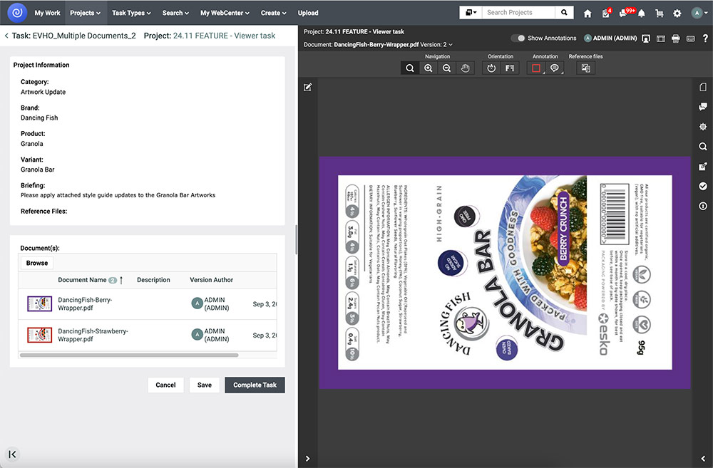 - Simulate substrate color in the viewer to help QC/Prepress teams visualize the finished product, reducing time and energy spent on printing proofs.