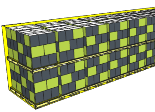 Determinare i migliori schemi di pallet e caricare i carrelli utilizzando un pacco esterno di dimensioni fisse.
