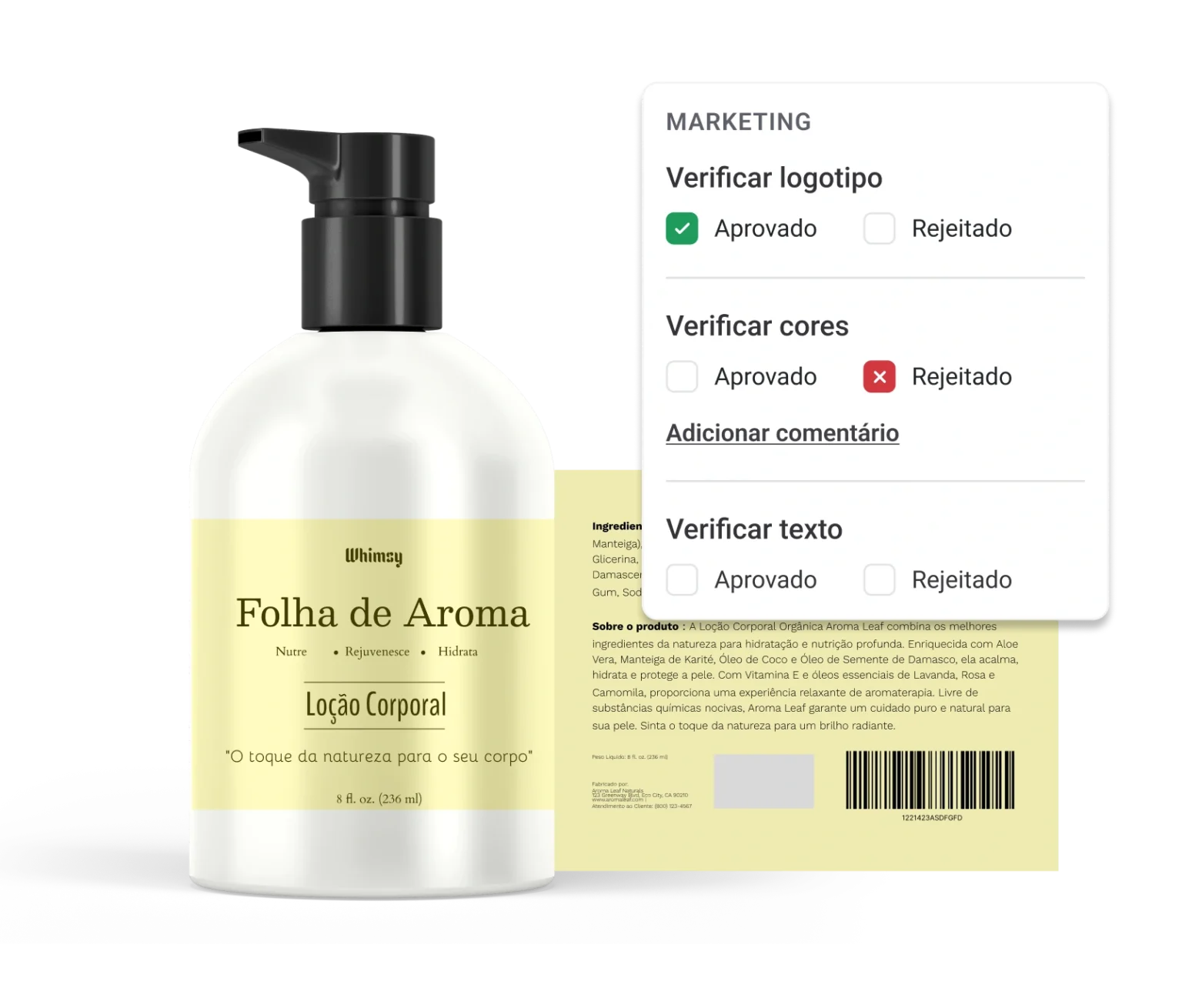 Crie fluxos de aprovação, revise os textos da embalagem e verifique a conformidade — tudo em um só lugar.